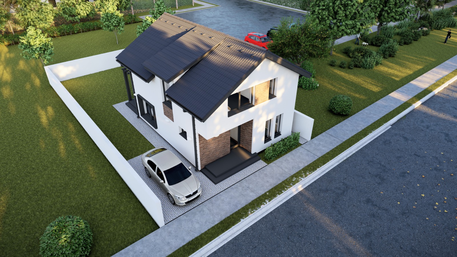 De asemenea, și spațiul de parcare este asigurat, lângă intrarea principală a casei, fiind amenajat cu pavaj.