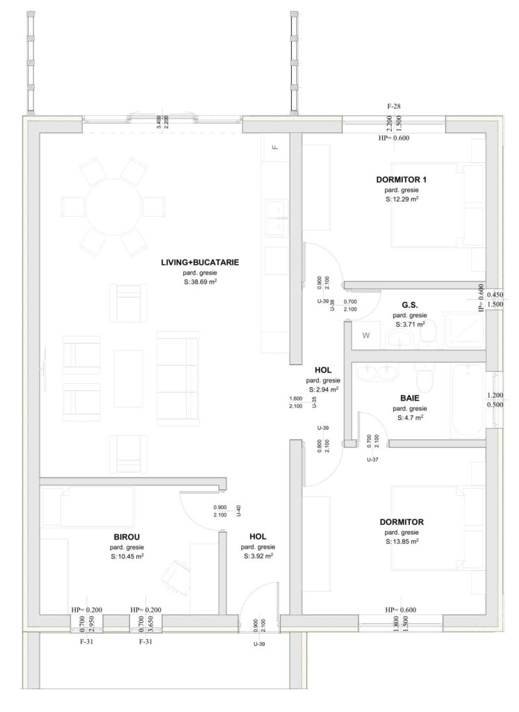 Biroul dispune de o suprafață utilă de 10,45 mp.